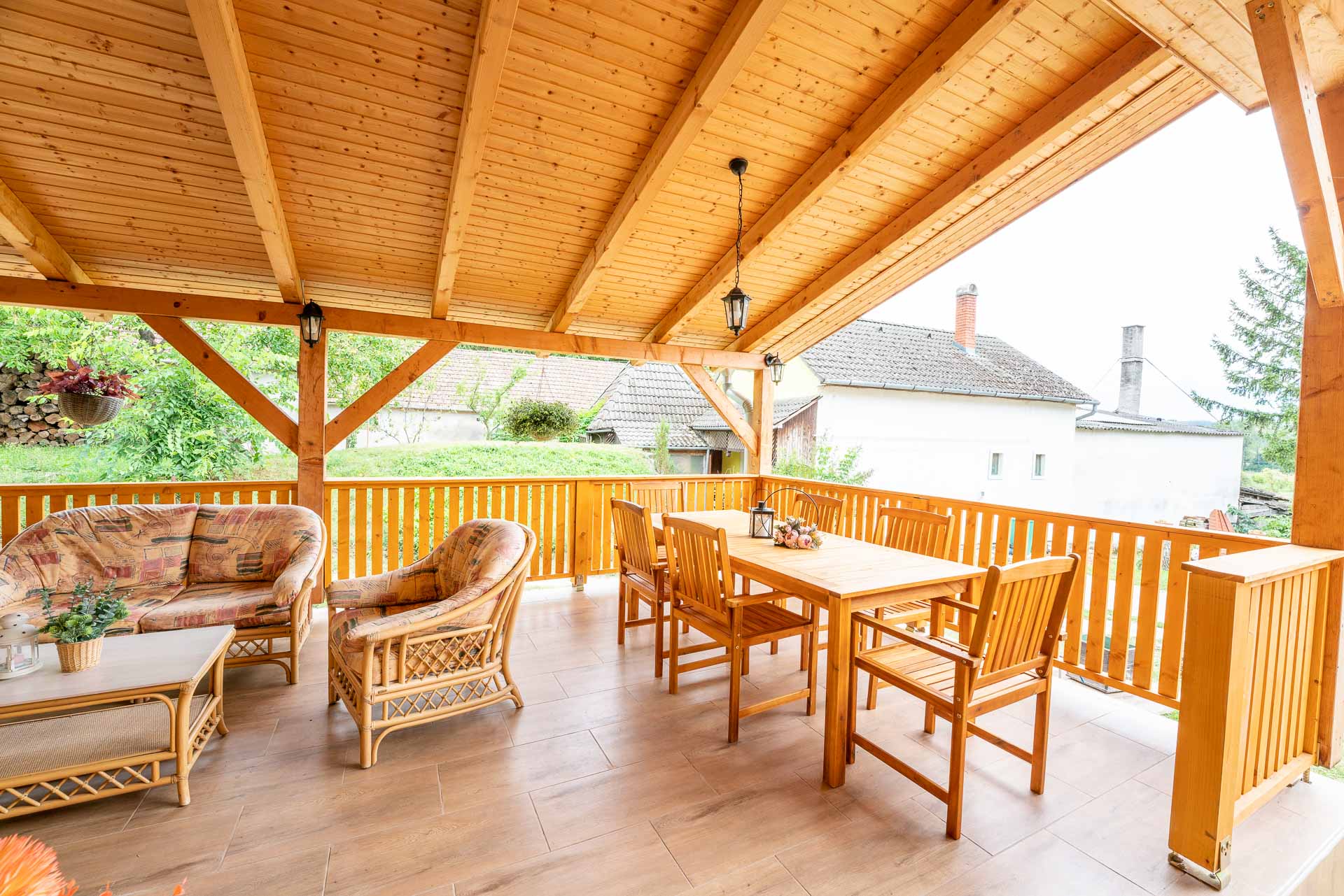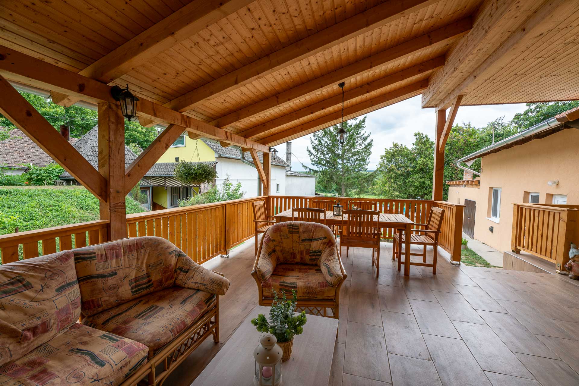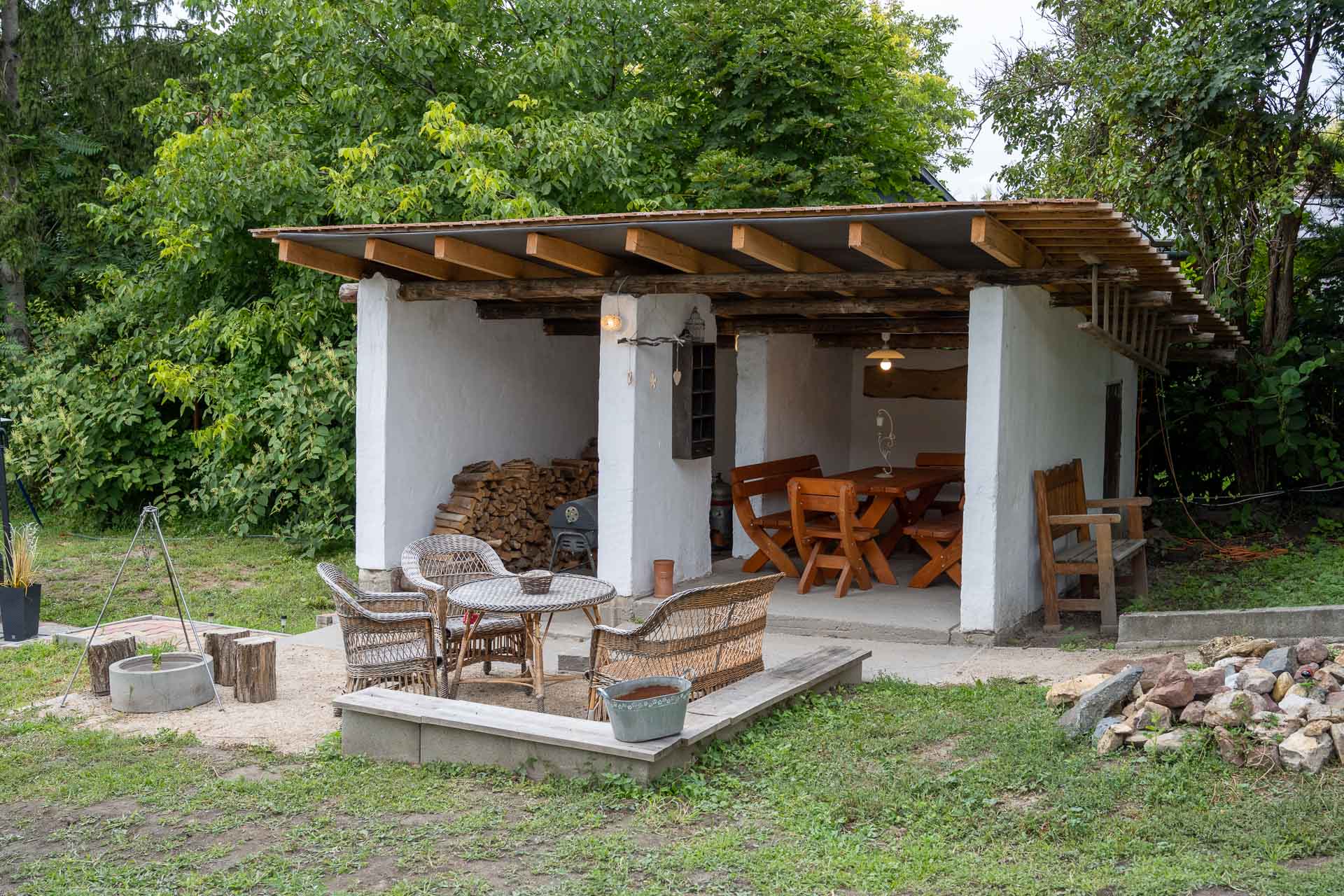 Vendégházunk Szóládon a Somogyi dombság szívében Balatonszárszótól 4 km-re található. Szívből ajánlom, ha kiszeretnél szakadni a hétköznapok mókuskerekéből, ha csendre, nyugalomra és falusi környezetre vágysz. Az otthonosan, ízlésesen berendezett házban minden megtalálható, amire szükséged lehet az ittléted alatt, de nemcsak a házban, hanem a kertben is, amelyet a medence, a dézsafürdő, a jakuzzi,szauna, a kerti grillező és a hatalmas fedett terasz még csodálatosabbá tesz. A teraszon ülve a kakasokat, az énekes madarakat hallgatva, a kert végében portyázó gólyákat figyelve, a pillangók táncát látva csak azt érzed, hogy megállt körülötted az idő és nem akarsz innen elmenni. Ősszel, augusztus-szeptemberben, szarvasbőgés idején, kis szerencsével csoda szép szarvasok figyelhetők meg, akár a melegvizes dézsában ülve is. A ház kiváló helyszíne lehet családi és baráti összejöveteleknek, de akár egyéni, vagy csoportos elvonulásoknak is . Ha nyüzsgésre vágynál, Balatonszárszó pár perc alatt elérhető autóval.