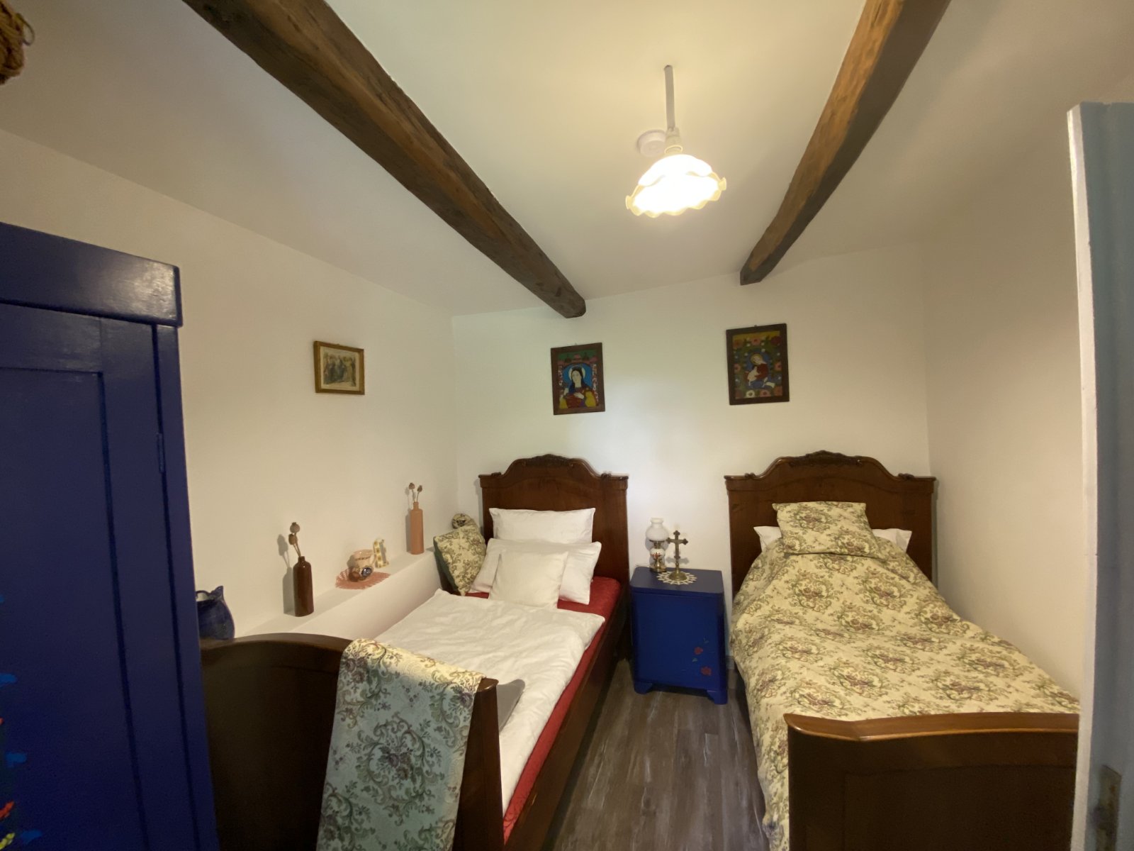 Becskén, a kéktúra útvonalon, a Cserhát szívében helyezkedik el parasztházunk autentikus módon berendezve. Minden bútor eredeti, 100 éves, felújított, modern állapotban, a hagyományos palóc stílusban, kerámiákkal, régi tárgyakkal díszítve, kézzel festett bútorokkal. Mint egy tájház a modern kornak megfelelően. A felszerelt konyhában minden megtalálható a főzéshez. Vízforraló, mikró, kávéfőző, elektromos rezsó, edények, hűtőszekrény. Az erdő mellett élvezhető a csend, láthatóak az őzikék a fedett teraszról. A szomszéd házban lakunk, bármiben tudunk segíteni. Transzfert vállalunk. Grillezni, bográcsozni, sátrazni is lehet. Előre jelezzétek, légyszi. A kertből a zöldségek fogyaszthatók. A buddhista sztupa 600 méter távolságra van az utcánktól. Kedves vendégek, kérlek, plusz vendégeket ne fogadjatok.